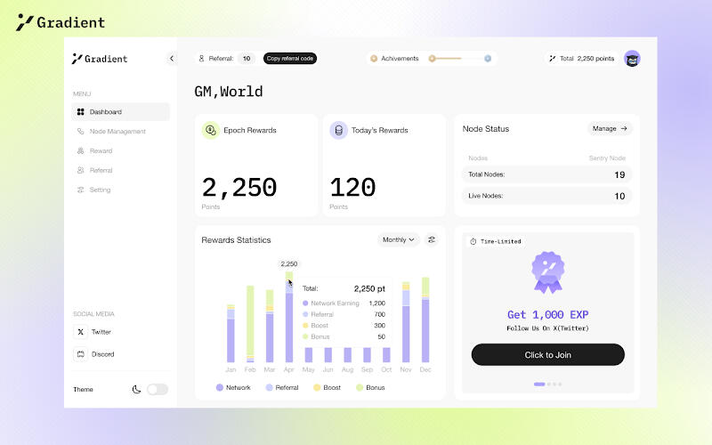Gradient Network gives out extra points when connecting though referral codes atm - So for a extra bonus and to help us connect